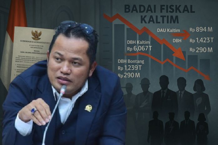 Di saat yang sama, badai fiskal kian terasa nyata. Estimasi perhitungan Dana Transfer Umum (DTU) 2026 yang sempat diposting dalam status whatsapp Wali Kota Bontang, Neni Moerniaeni, memperlihatkan penurunan tajam pada alokasi untuk Provinsi Kaltim.