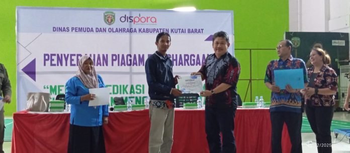Penyerahan piagam penghargaan mengusung tema “Melalui Dedikasi dan Komitmen Tinggi dalam Mencapai Prestasi yang Berkelanjutan”. Kegiatan ini secara resmi dibuka oleh Kepala Dispora Kutai Barat Gamas Laden, didampingi Kepala Bidang Layanan Kepemudaan Mikael Dodik dan Jafung Pembudayaan Olahraga Fahrizan.