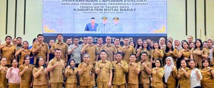 SENDAWAR — Pemerintah Kabupaten Kutai Barat menegaskan pentingnya evaluasi kinerja sebagai dasar penentuan arah pembangunan ke depan melalui penyampaian laporan Evaluasi Rencana Kerja (Renja) Perangkat Daerah Triwulan IV Tahun 2025.