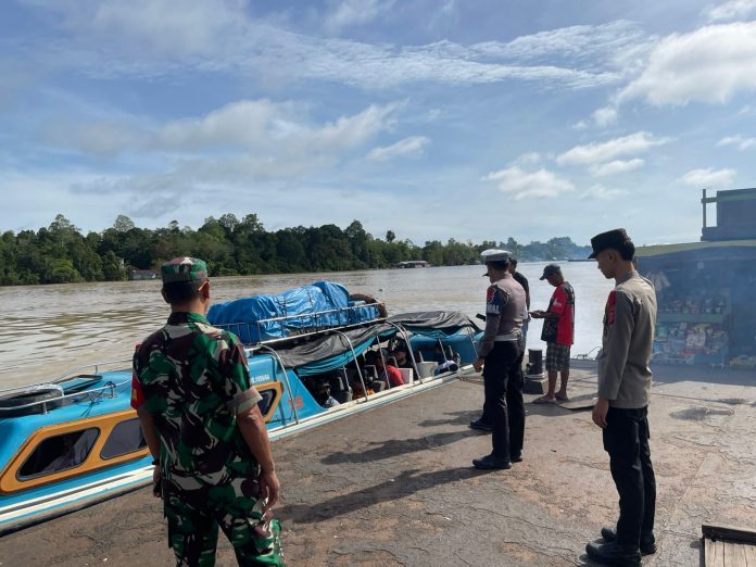 SENDAWAR – Kepolisian Sektor (Polsek) Melak bersama Babinsa Koramil 0912-12 Melak, Dinas Perhubungan (Dishub) Kutai Barat, serta Polairud Polres Kutai Barat yang tergabung dalam Pos Pengamanan (Pos Pam) arus mudik dan balik perayaan Natal 2025 dan Tahun Baru (Nataru) 2026 melaksanakan pengamanan di UPTD Pelabuhan Melak, Kecamatan Melak, Minggu (28/12/2025) pagi.